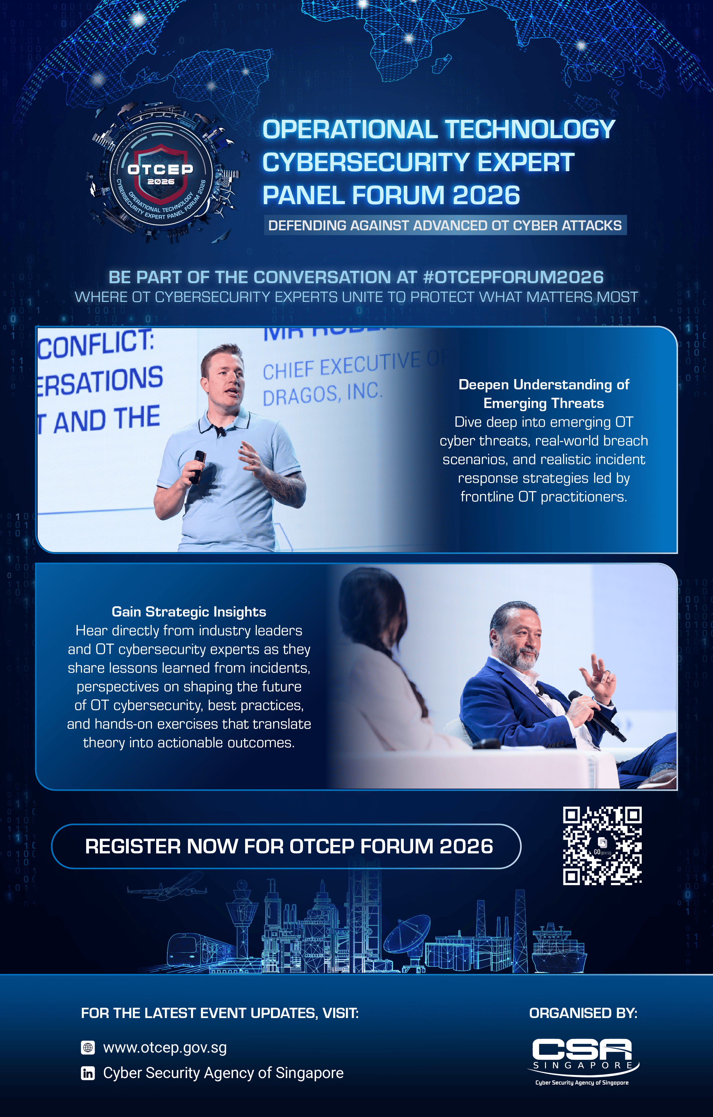 Be part of the conversation at OTCEP Forum 2026 where OT cybersecurity experts unite to discuss key global OT technologies, emerging cyber threats, share insights from their experience in handling global cybersecurity incidents, and recommend practices to address cybersecurity challenges and gaps for the OT sector.